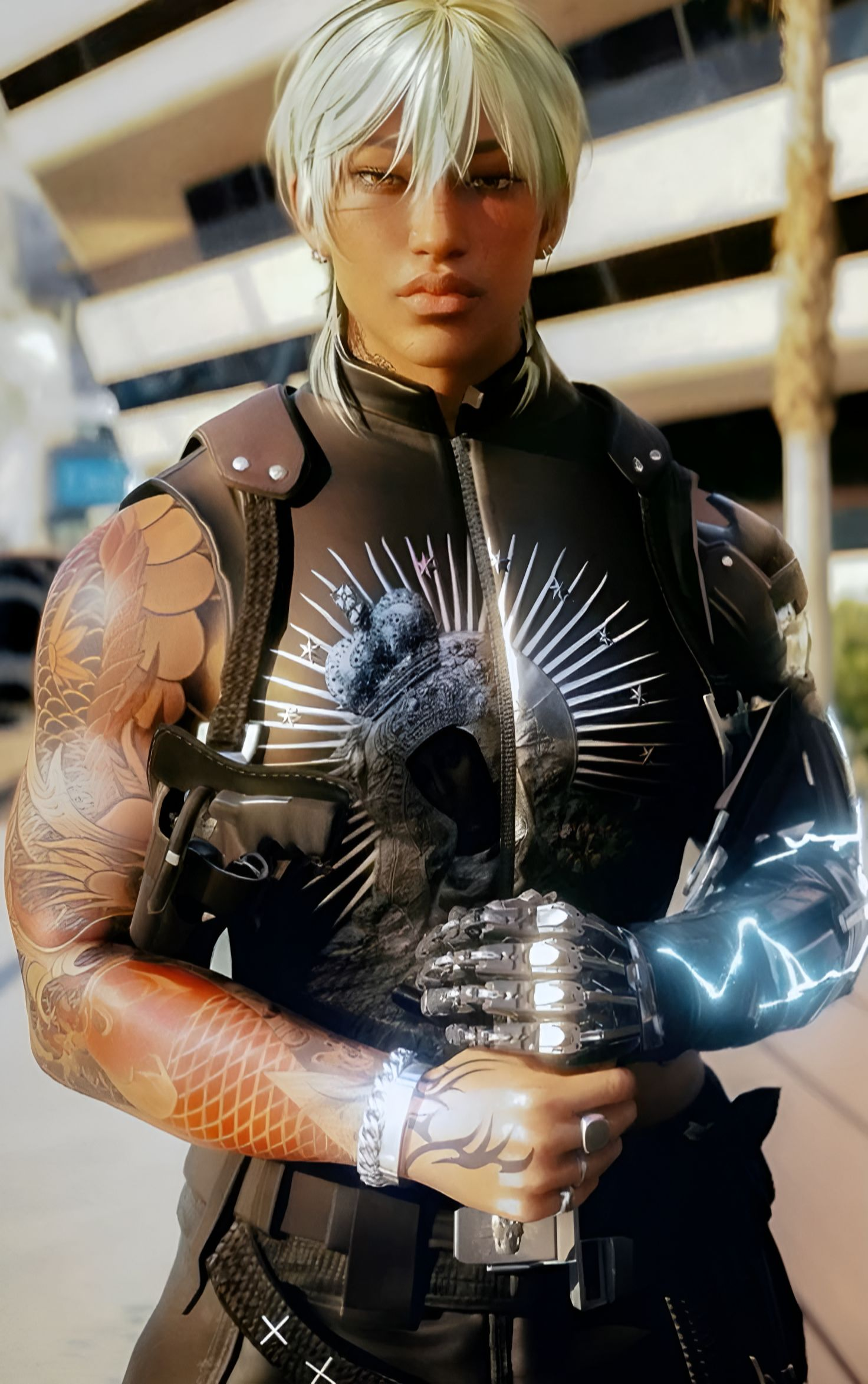 Cortex frontal: Face: Óptica “Clarividente” de Kiroshi – Destaca os inimigos em um raio de 12,5-19,5 m. Braços: Lâminas de Louva-a-Deus térmico Mãos: Força Imóvel-